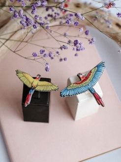 Набор брошек "Попугаи" - Брошь/ значок - 627 (Попугай желтый), 628 (Попугай голубой)