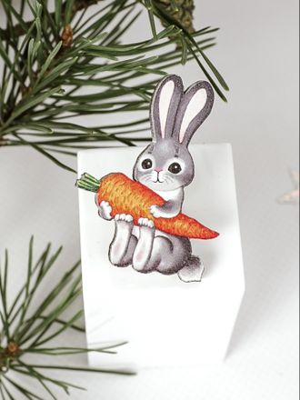 Зайчик с морковкой - Брошь/значок - 773 0 Оформить заказМатериал: натуральное дерево;Размер: 48*35 мм;Оригинальный дизайн разработан нашим художником.У Вас есть уникальная возможность купить авторскую брошь по цене производителя!Комментарии 0 Нет комментариев Добавить комментарий